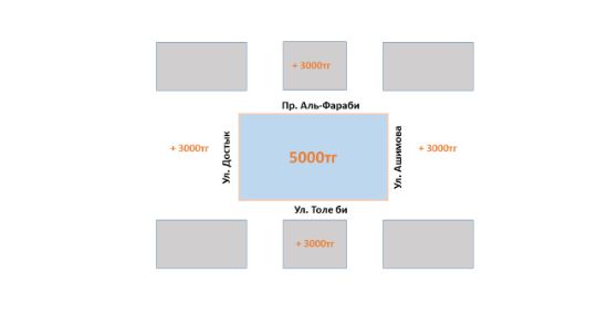 В квадрате Аль-Фараби-Достык-Толе би-Ашимова - 5000тг
